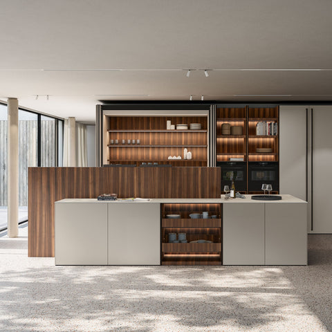 The Tribut Edition Sistemi kitchen systems collection offers the opportunity to translate an architectural experience into the domestic environment — where fluid movement and everyday functionality are never compromised.